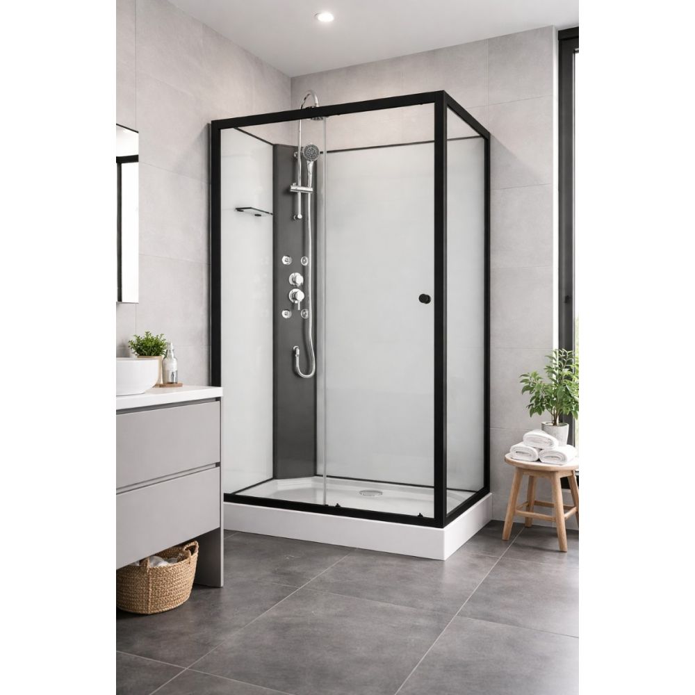 VIVA BLACK - Cabina de dus completa, dreptunghiulara, fara plafon, 80x120x234cm - PS19B